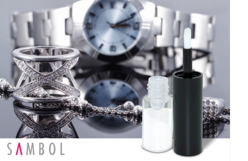 - ATP 100 Silber auf die Schmuckoberfläche auftragen und ca. 3 bis 5 Minuten einwirken lassen.