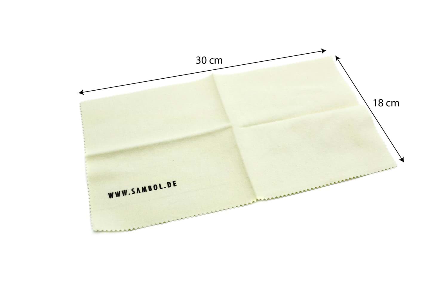 Das Sambol Gold und Silber Poliertuch ist ideal für glänzende Oberflächen. Es ist leicht anzuwenden und hilft Ihnen dabei, Ihren Lieblingsstücken einen besonderen Glanz zu verleihen. Gerade in Kombination mit unseren Reinigungsprodukten, ist dieses Pflegetuch die perfekte Ergänzung.
