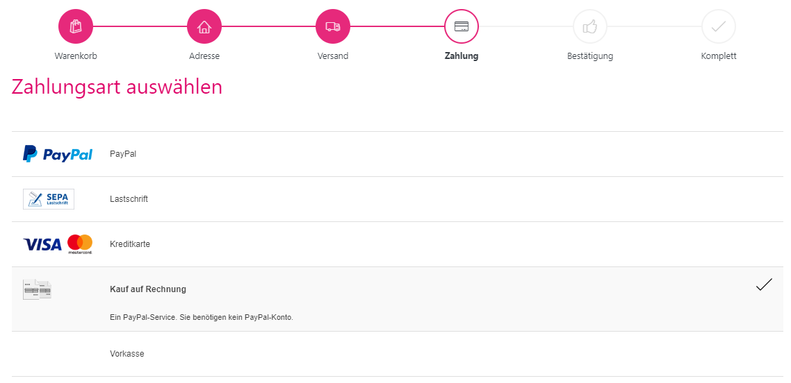 Kauf auf Rechnung ist ein Service von PayPal, erfordert jedoch für Sie kein PayPal Account.