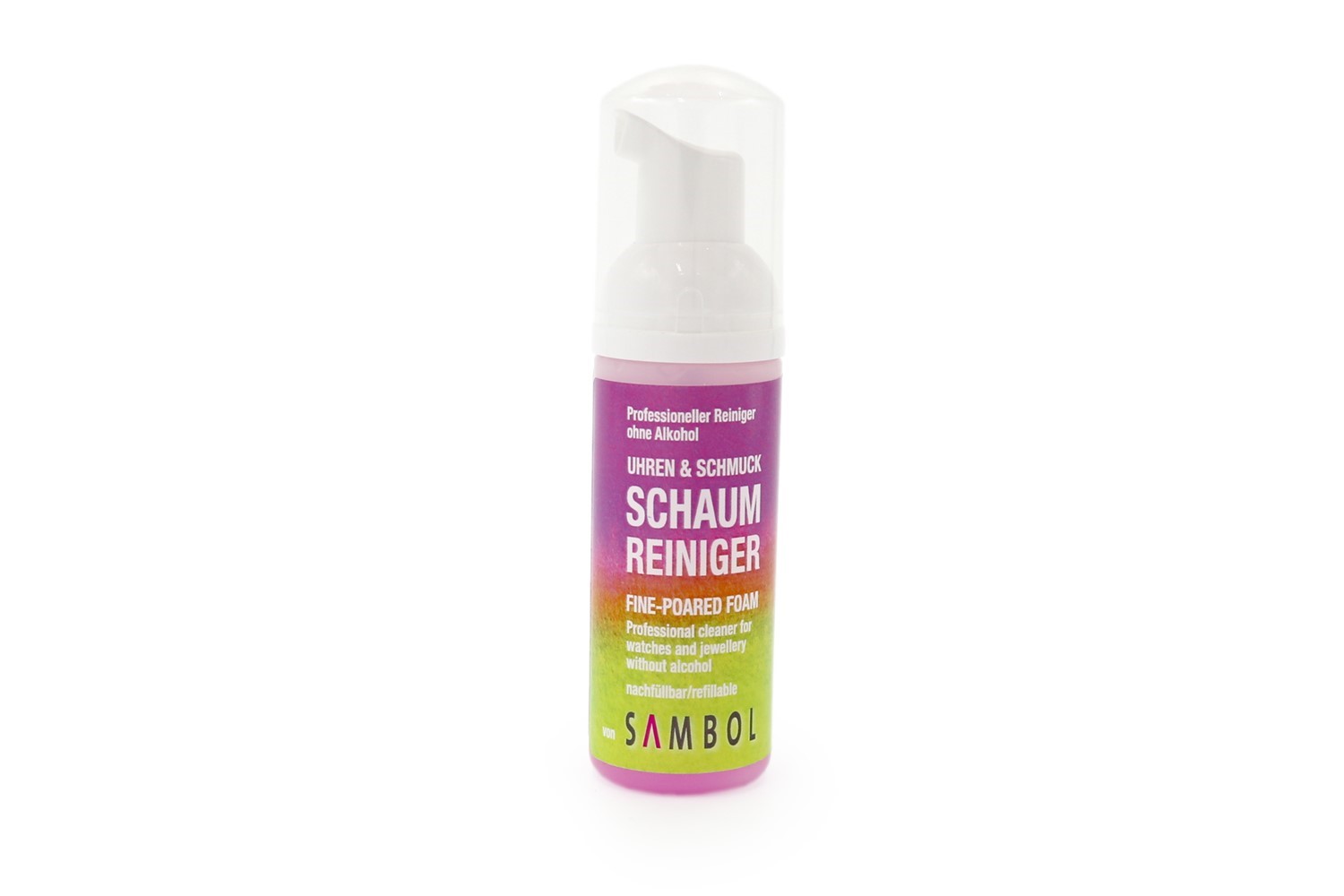 Der Sambol Schaum–Glanz–Reiniger für Uhren und Schmuck ist ideal für den Hausgebrauch. Er ist vielseitig einsetzbar. Der microfeine Schaum reinigt schonend Gold, Silber, geschwärztes Silber und Edelsteine. Auch Metallarmbänder, sowie Mode- und Trendschmuck lassen sich mit diesem Schaum bestens reinigen. Diese Pumpflasche ist Nachfülbar, dafür eignet sich die Nachfülflasche Art.Nr.: 1004-0250 und 1004-3.