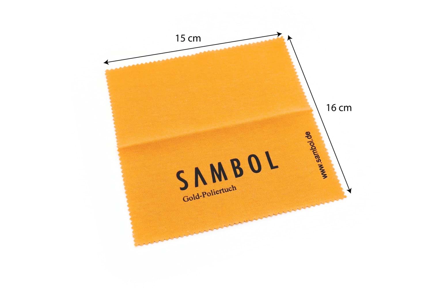 Das Sambol Gold-Poliertuch ist ideal für wertvollen Schmuck und glänzende Oberflächen. Es ist leicht anzuwenden und hilft Ihnen dabei, Ihren Lieblingsstücken einen besonderen Glanz zu verleihen. Gerade in Kombination mit unseren Reinigungsprodukten, ist dieses Pflegetuch die perfekte Ergänzung. Das Tuch ist in verschiedenen Größen erhältlich und besteht aus 100% Baumwolle. Für die Imprägnierung wurde eine Zubereitung aus pflanzlichem Öl, natürlicher Seife und mineralischer Tonerde, sowie unter 5 % nichtionische Tenside und Wasser verwendet. Außerdem sind die verwendeten Produkte nur in geringen Mengen enthalten und unterliegen nicht der Gefahrstoffklasse VO. Das Tuch ist handlich und kann gerade für zwischendurch bestens verwendet werden. Ihre Lieblingsstücke sollten Sie am besten nach jedem Tragen sanft mit dem Pflegetuch von Kosmetika und Schweiß befreien. Reinigen Sie schonend Echtgold, sowie vergoldeten, mattierten Schmuck oder Korpuswaren und bringen Sie den edlen Glanz dieser Schmuckstücke zurück!