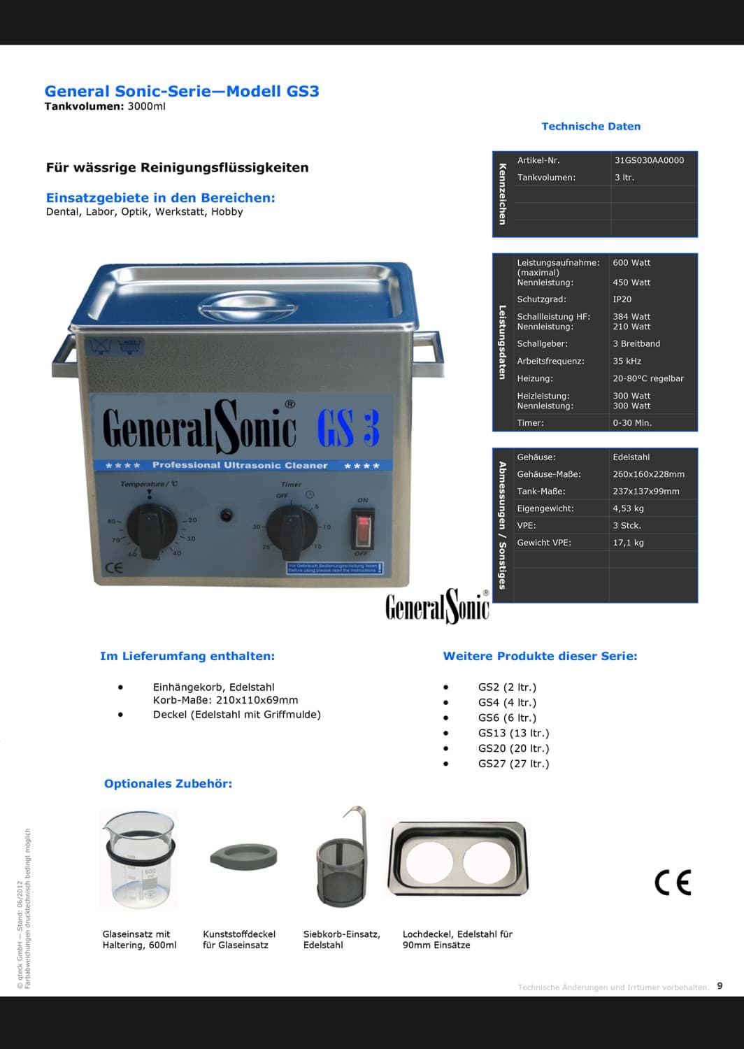 Ultraschall Reinigungsgerät General Sonic-Serie - Modell GS4H